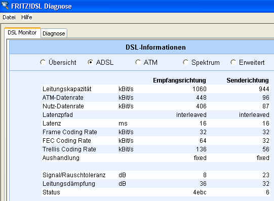 Meine Fritz!Box hat bei DIAGNOSE eine Dämpfung von